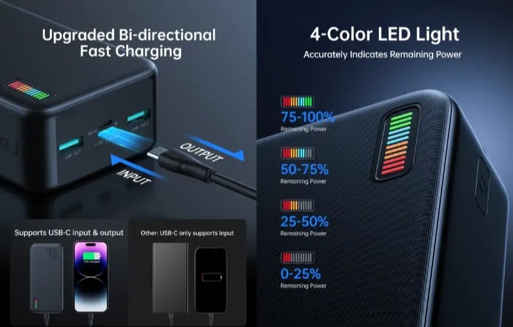 - (20000mAh/30000mAh large capacity, ultra-long battery life, make travelling easier)