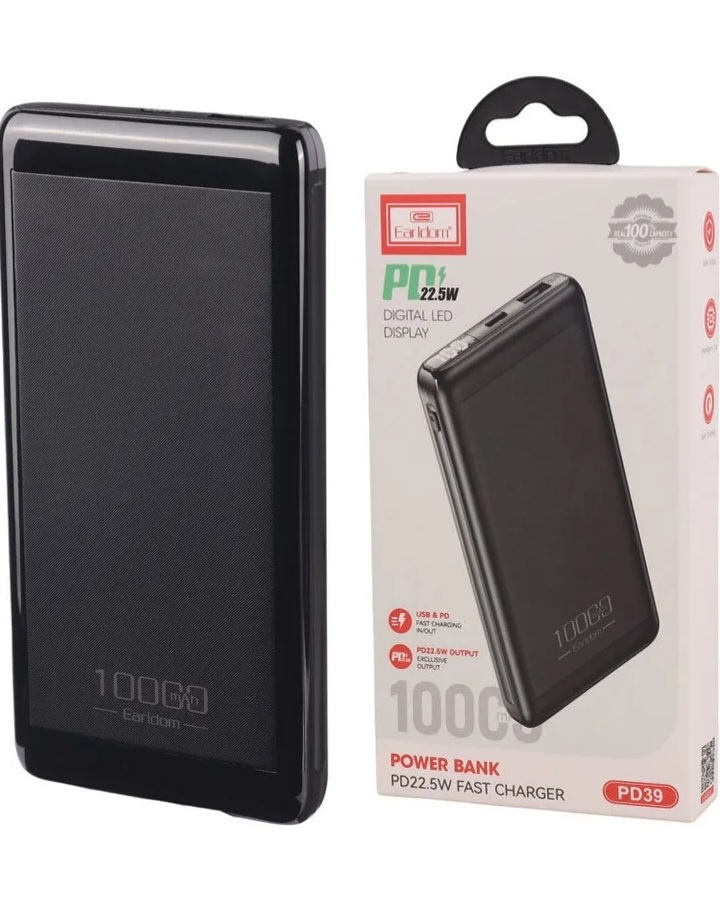 Earldom 10000mAh PD39 Fast Power Bank - Built-in 22.5W Fast Charging & LED Display - Type C PD Power Bank -